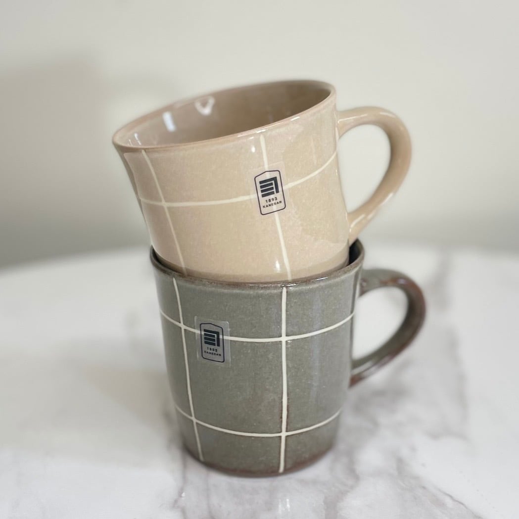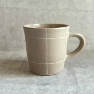和食器 瀬戸焼 マグカップ マグ 格子柄 ベージュ ブラック 黒 陶磁器 電子レンジ対応 食器洗浄機対応 新生活 お祝い 結婚 新築 引越し 日本製 プレゼント ギフト 贈り物 プチギフト 男性 女性 格子彫 カネ三商店 人気 シンプル