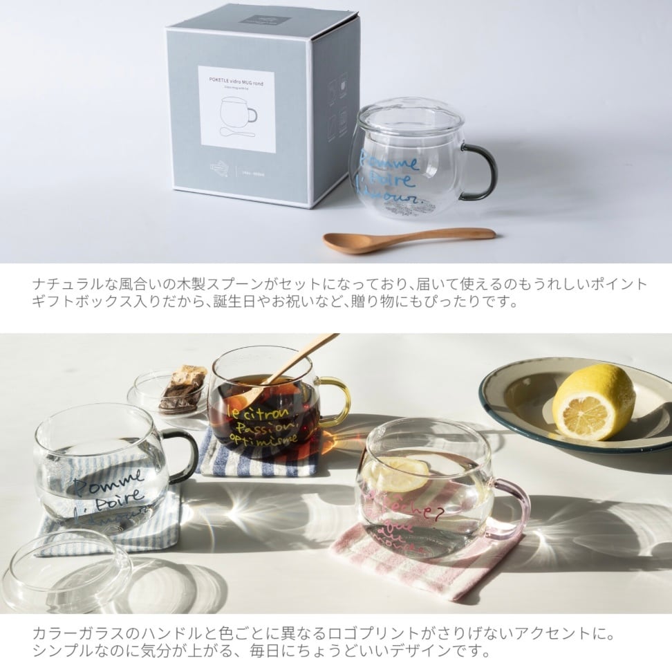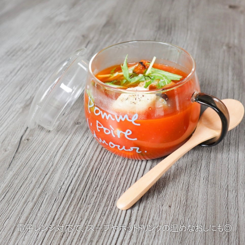 ガラスマグ 耐熱ガラス マグカップ スプーン 食器 コップ スープカップ 蓋 マルチ 温冷 デザイン性 機能性 ポケトル