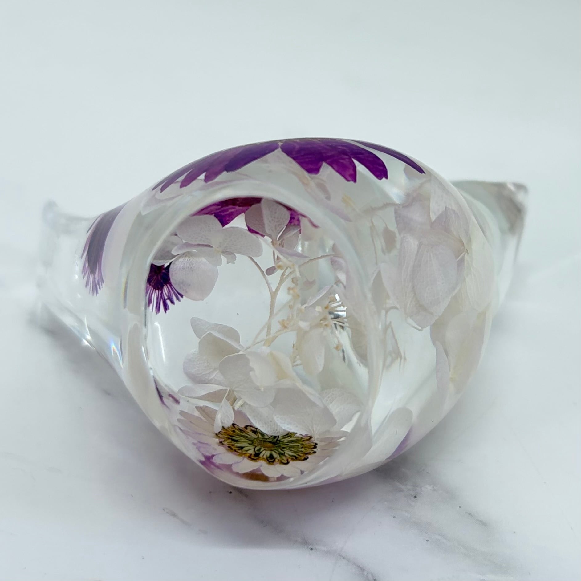 樹脂の中に可憐なドライフラワーを閉じ込めた、