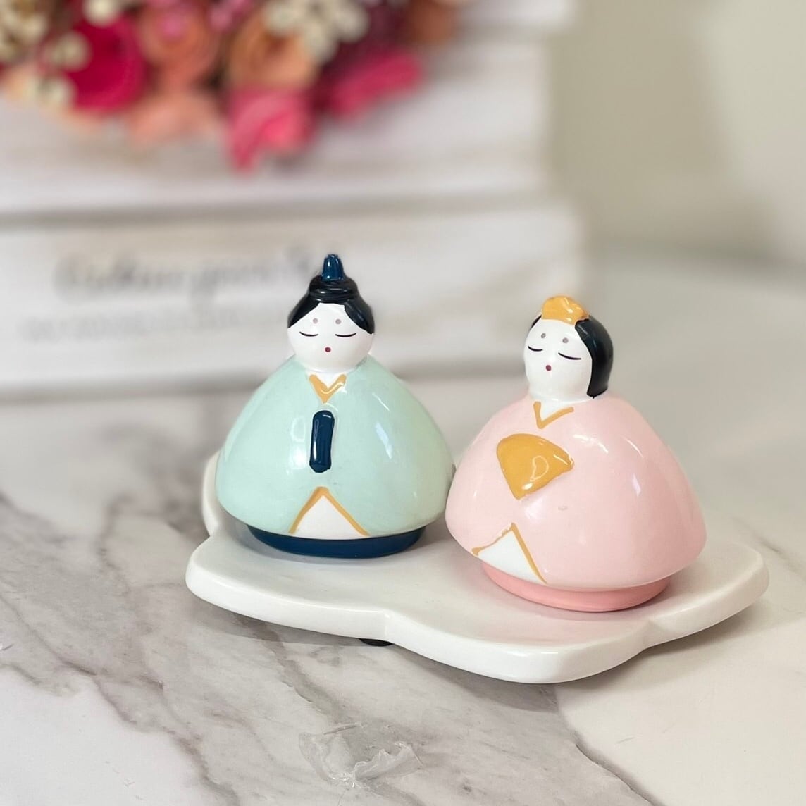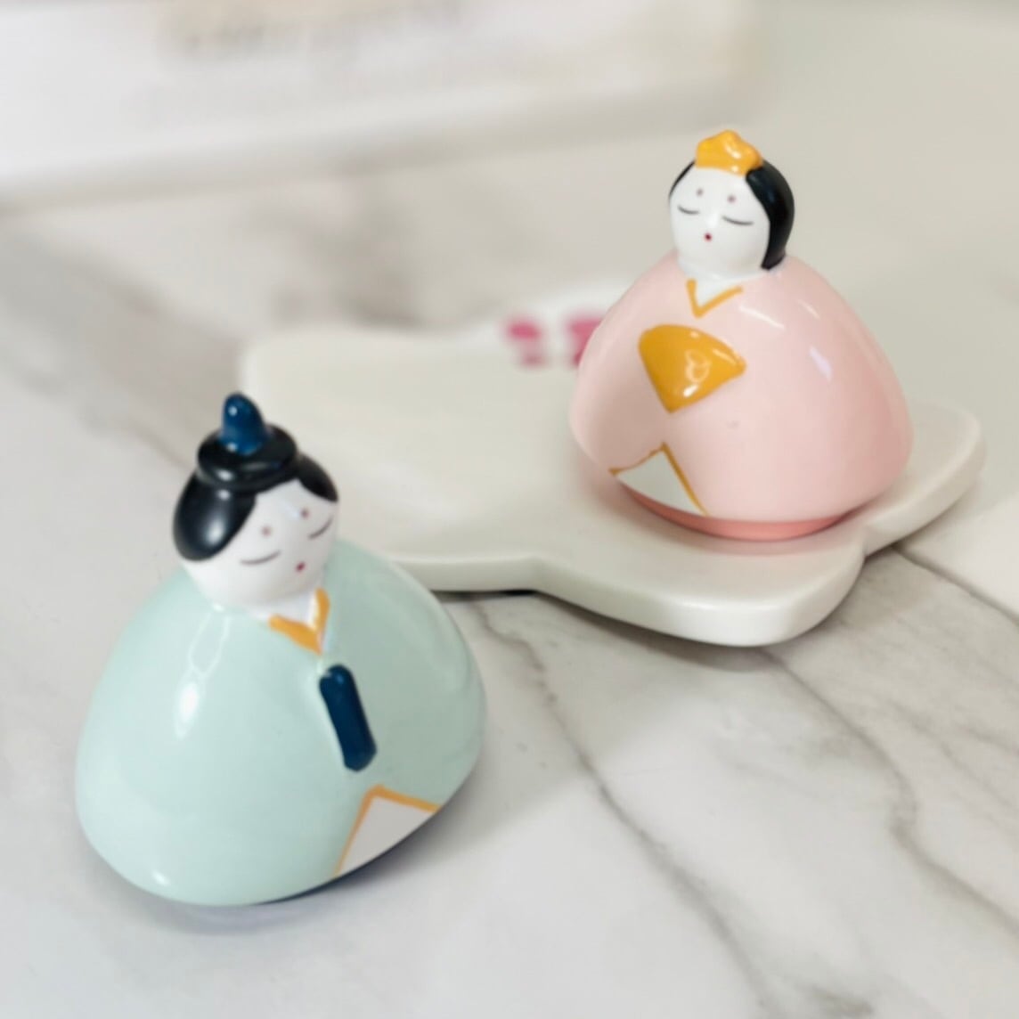 雛飾り ひなまつり 春 桃の節句 お祝い 陶器 飾り おひなさま おだいりさま コンパクト 大人可愛い