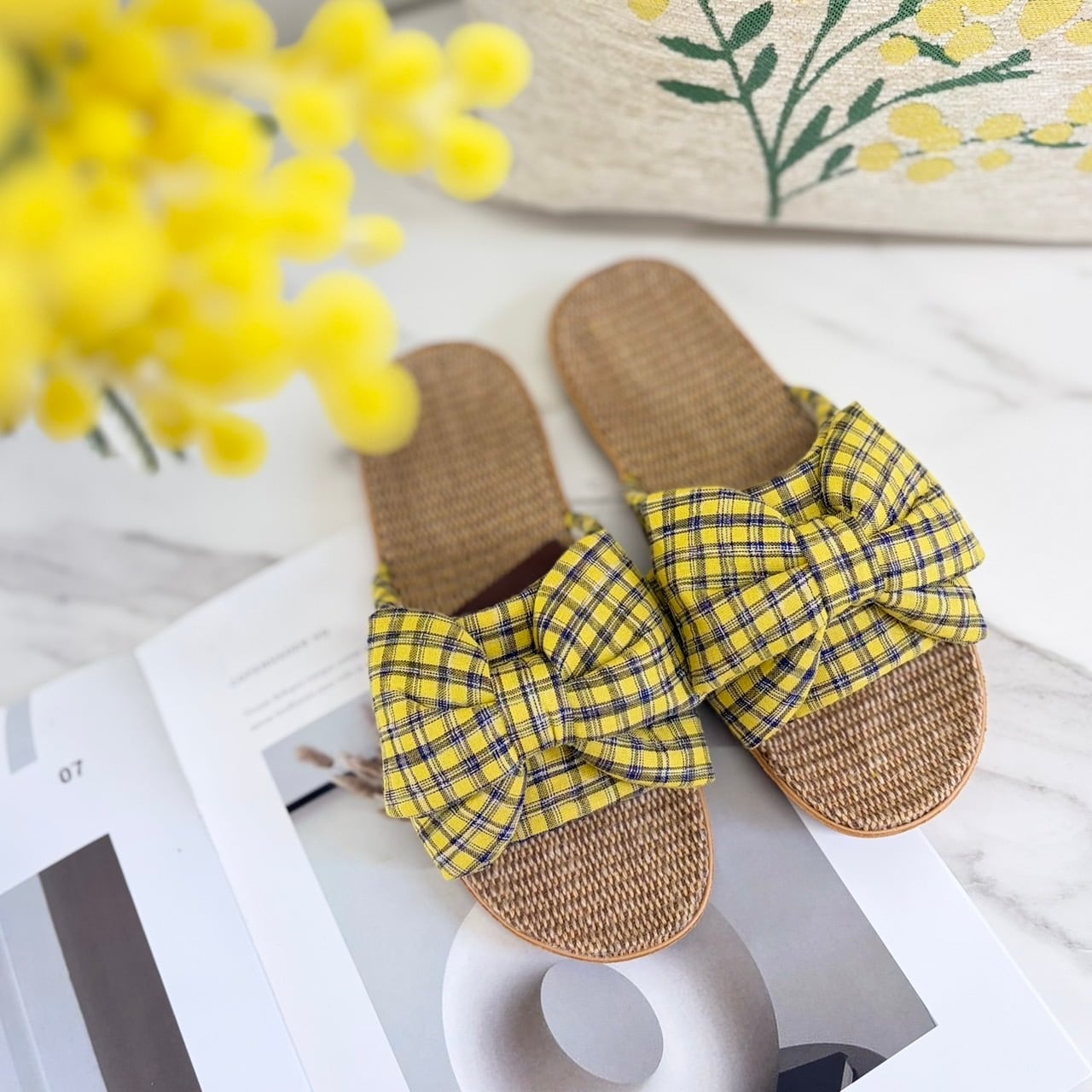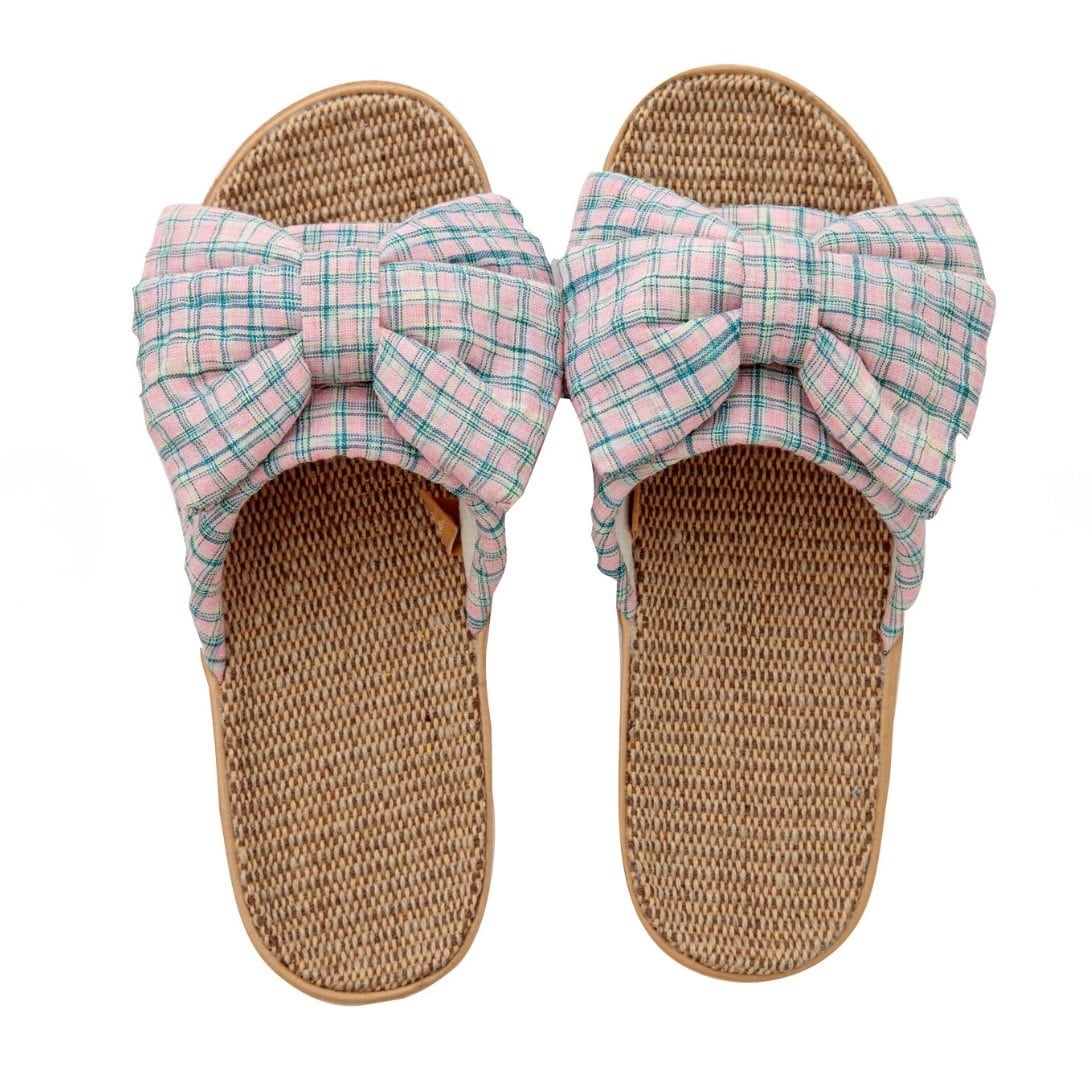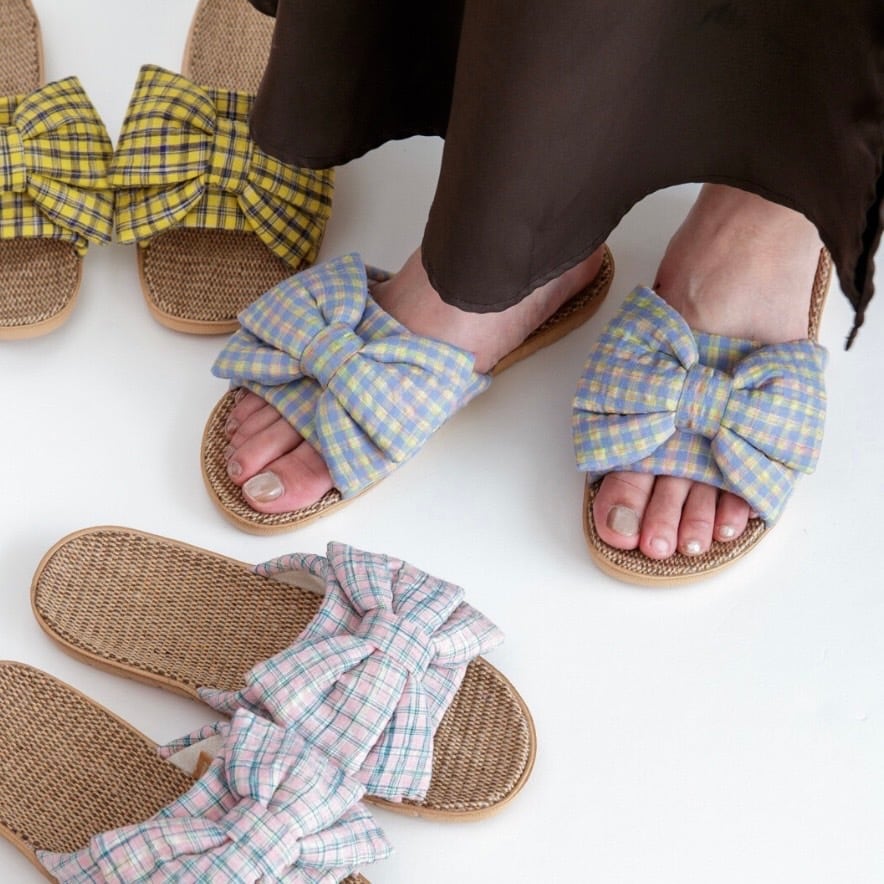 スリッパ ルームスリッパ ルームシューズ 室内履き 室内用スリッパ 春夏スリッパ 夏用スリッパ 涼しいスリッパ 軽量スリッパ 通気性 ジュート サッカー生地 リボンスリッパ 立体リボン チェック柄 大人可愛い フェミニン ナチュラルインテリア 来客用スリッパ おしゃれ室内履き 新生活 インテリア ギフト 母の日ギフト