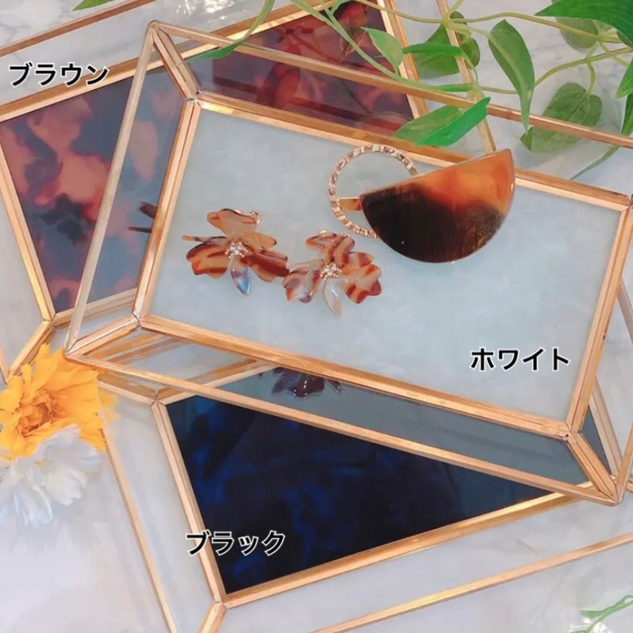 キュレット ガラストレイ RG お釣り入れ 鍵置き ジュエリートレイ インテリア小物 大理石 マーブル柄