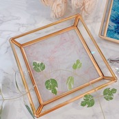 キュレット ガラストレイ SQ お釣り入れ 鍵置き ジュエリートレイ インテリア小物 大理石 マーブル柄
