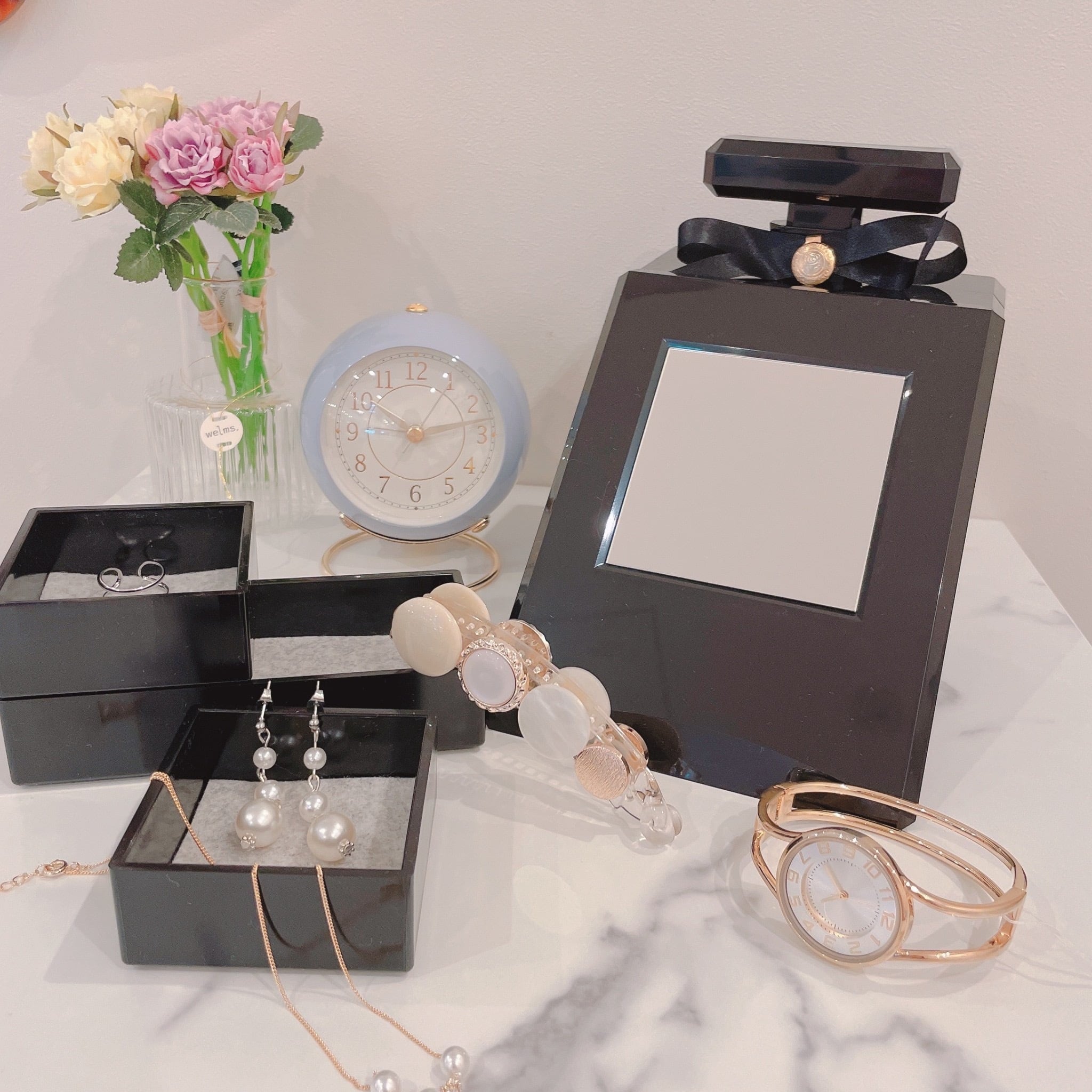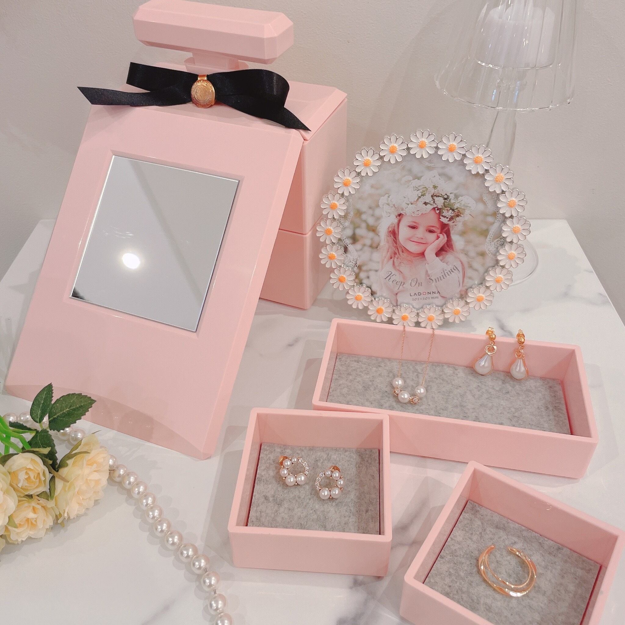 コフレパフュームジュエリーボックス アクセサリーケース 収納 可愛い 香水型 ミラー お洒落