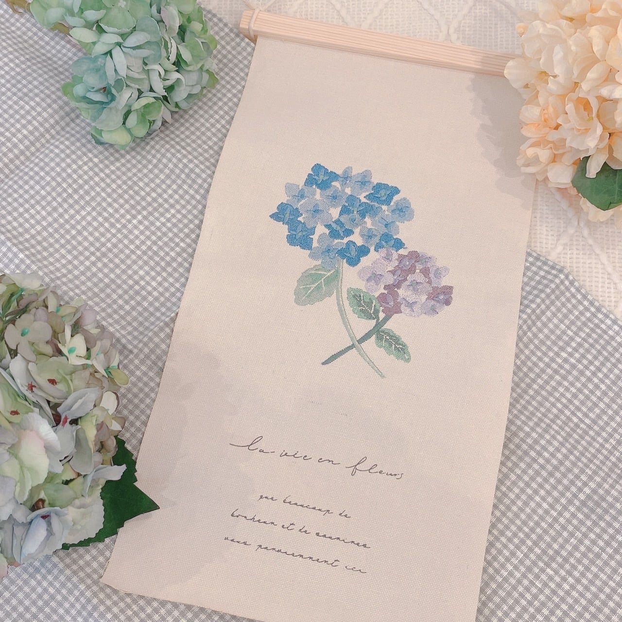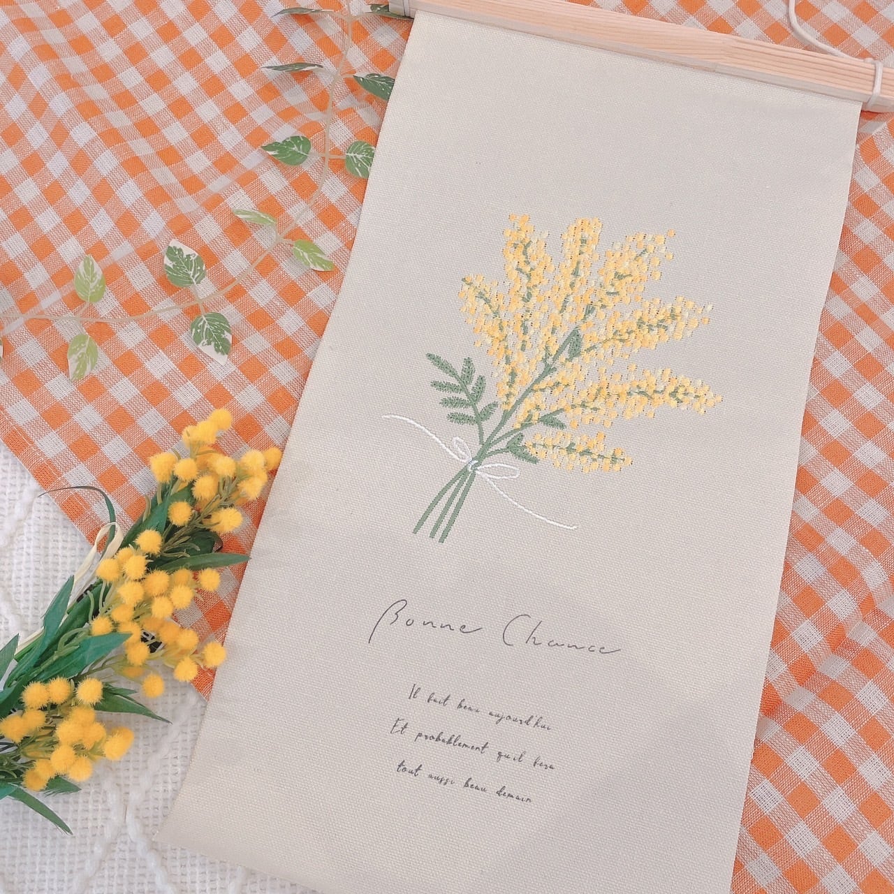 刺繍タペストリー Sサイズ 刺繍 ミモザ アジサイ 春 花