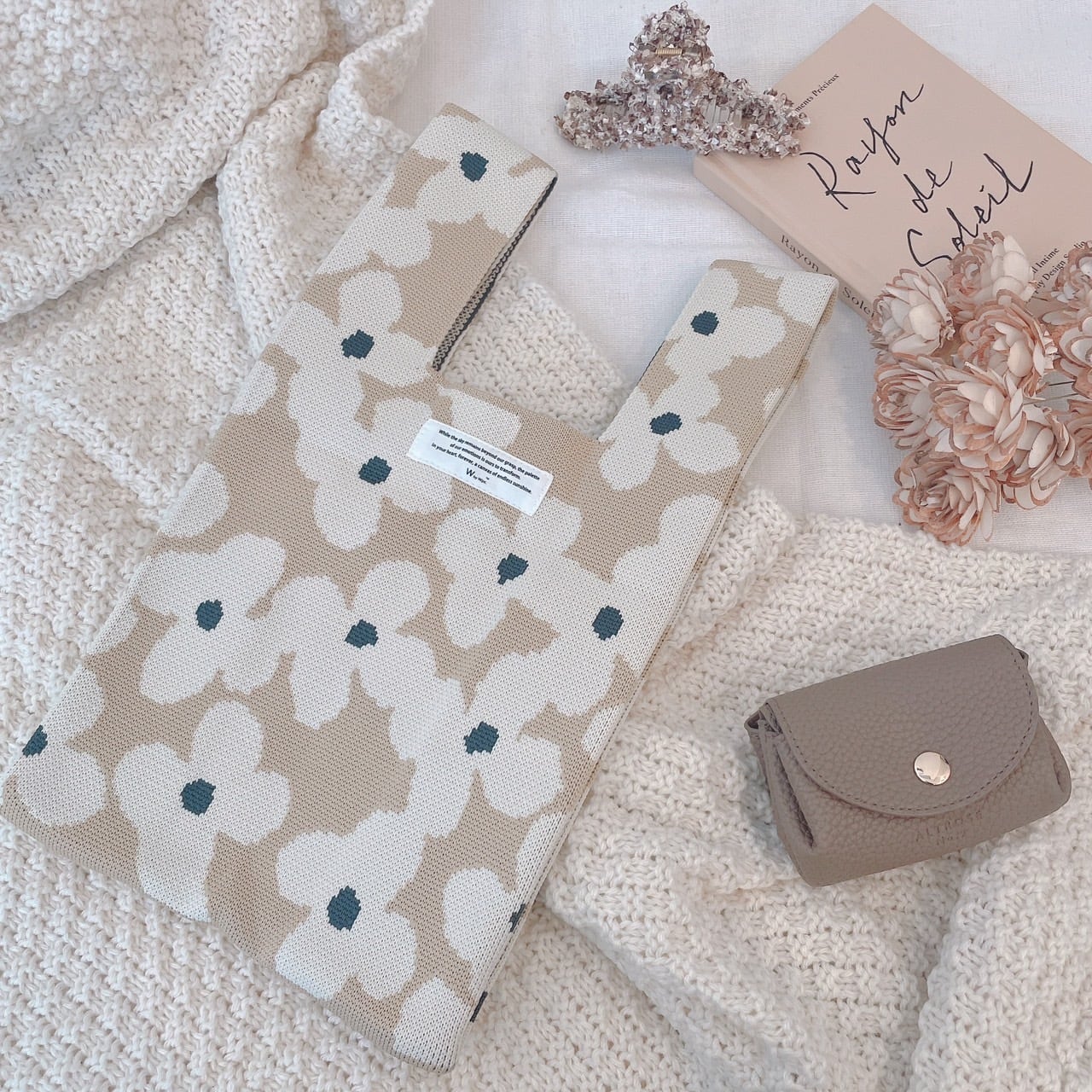ニットバッグ 花柄 北欧 ファッション バッグ 洗える 大人可愛い 秋 冬