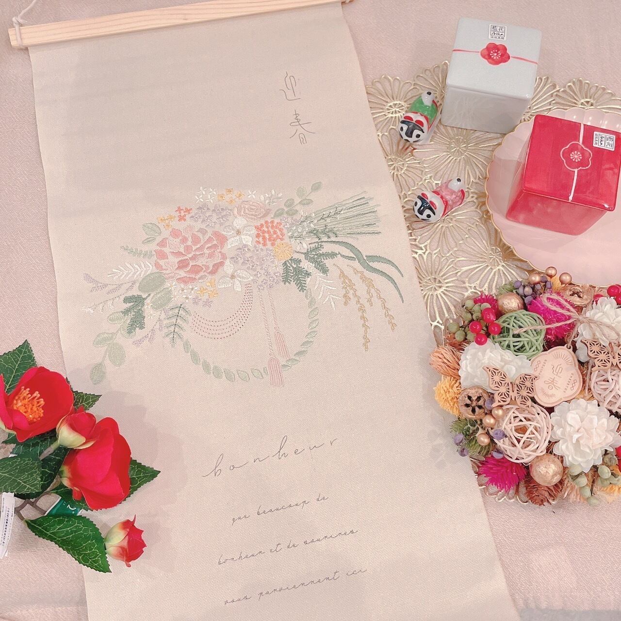 【Lサイズ】タペストリー 刺繍タペストリー タペストリー 正月 門松 しめ縄 しめ縄飾り 迎春 壁飾り インテリア