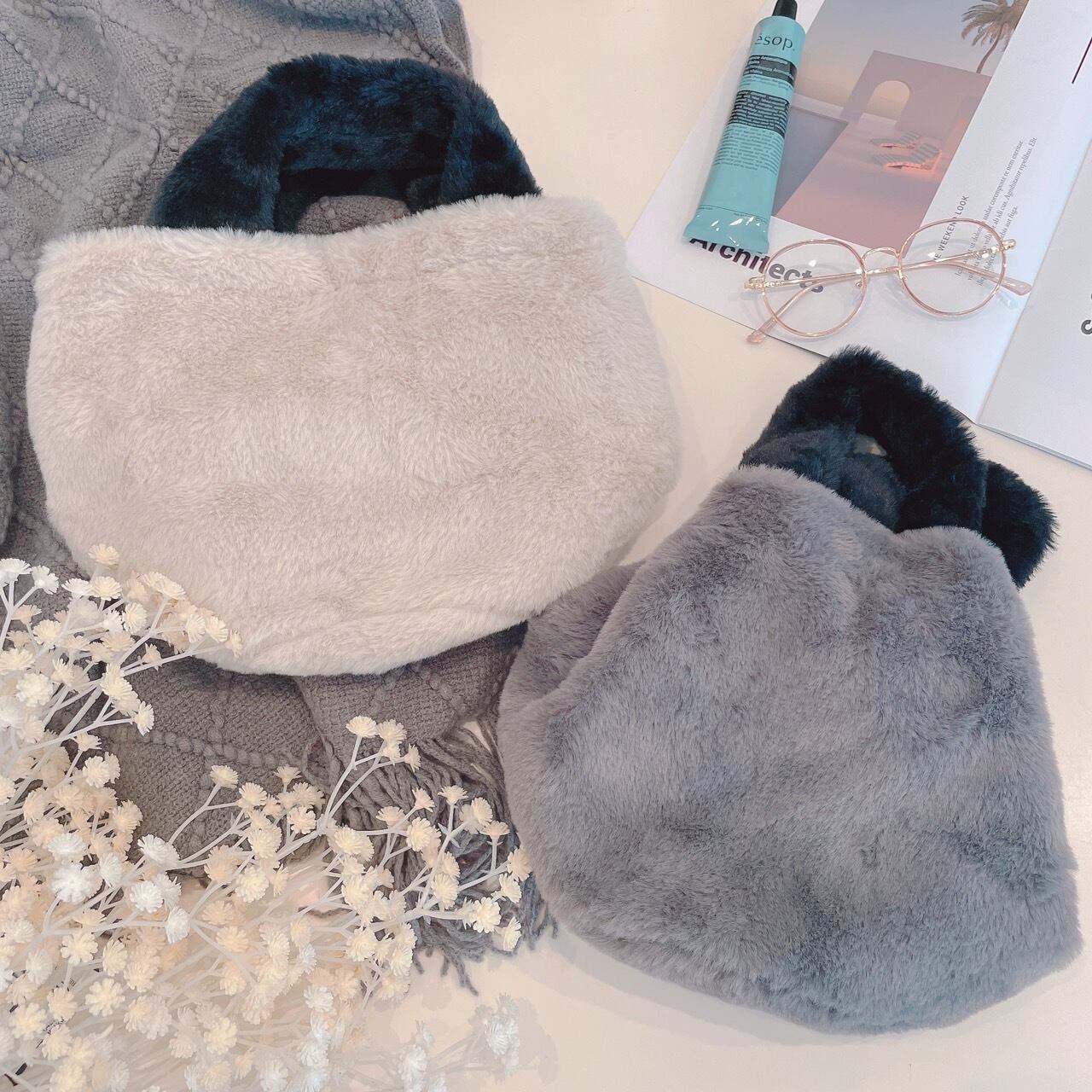 コロンとした形の可愛いファーバッグ。
